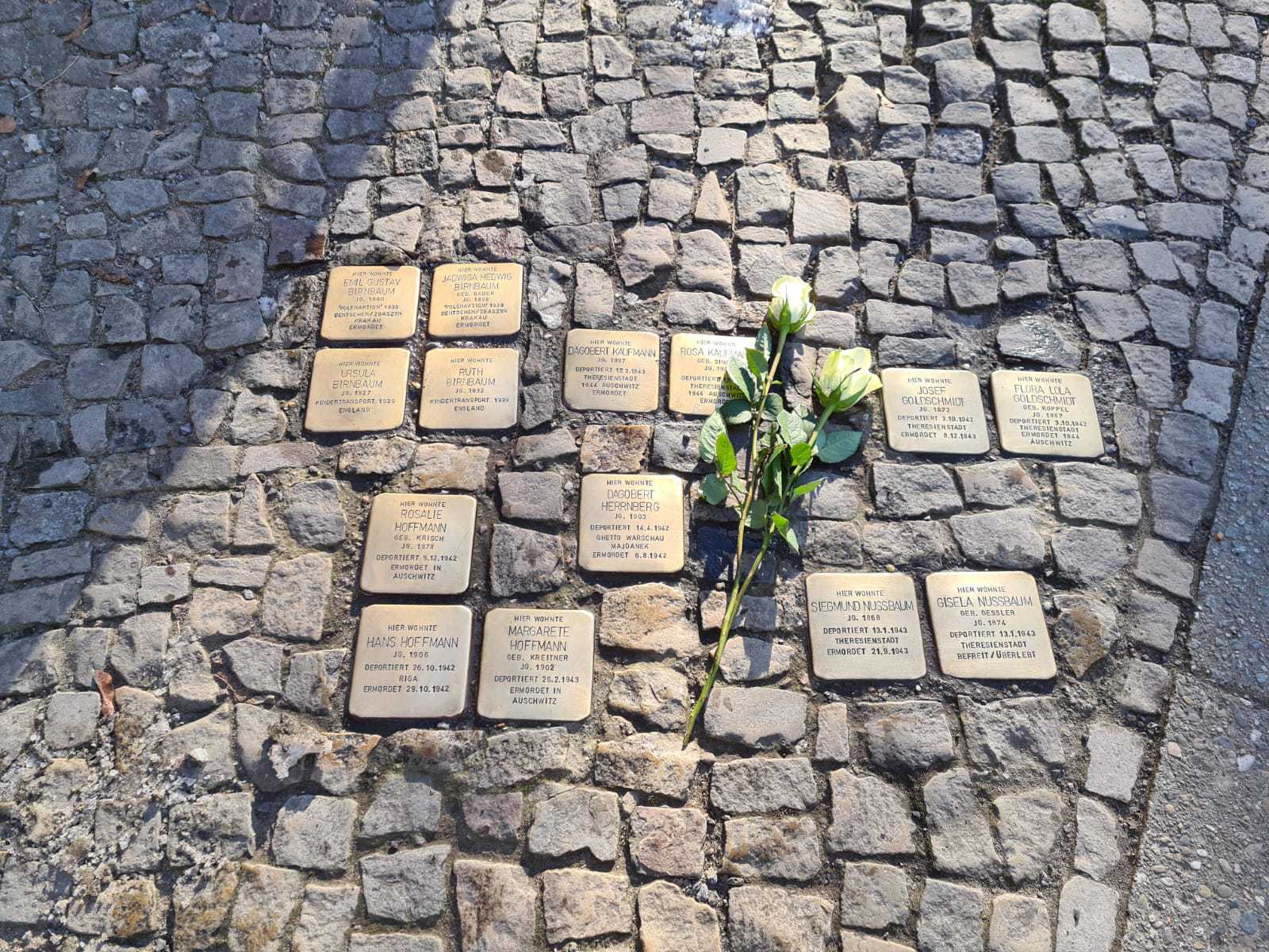 Wir danken der Firma BLUMEN- UND GARTENKUNST die die weißen Rosen, die wir auf die Stolpersteine legen konnten, gespendet haben.