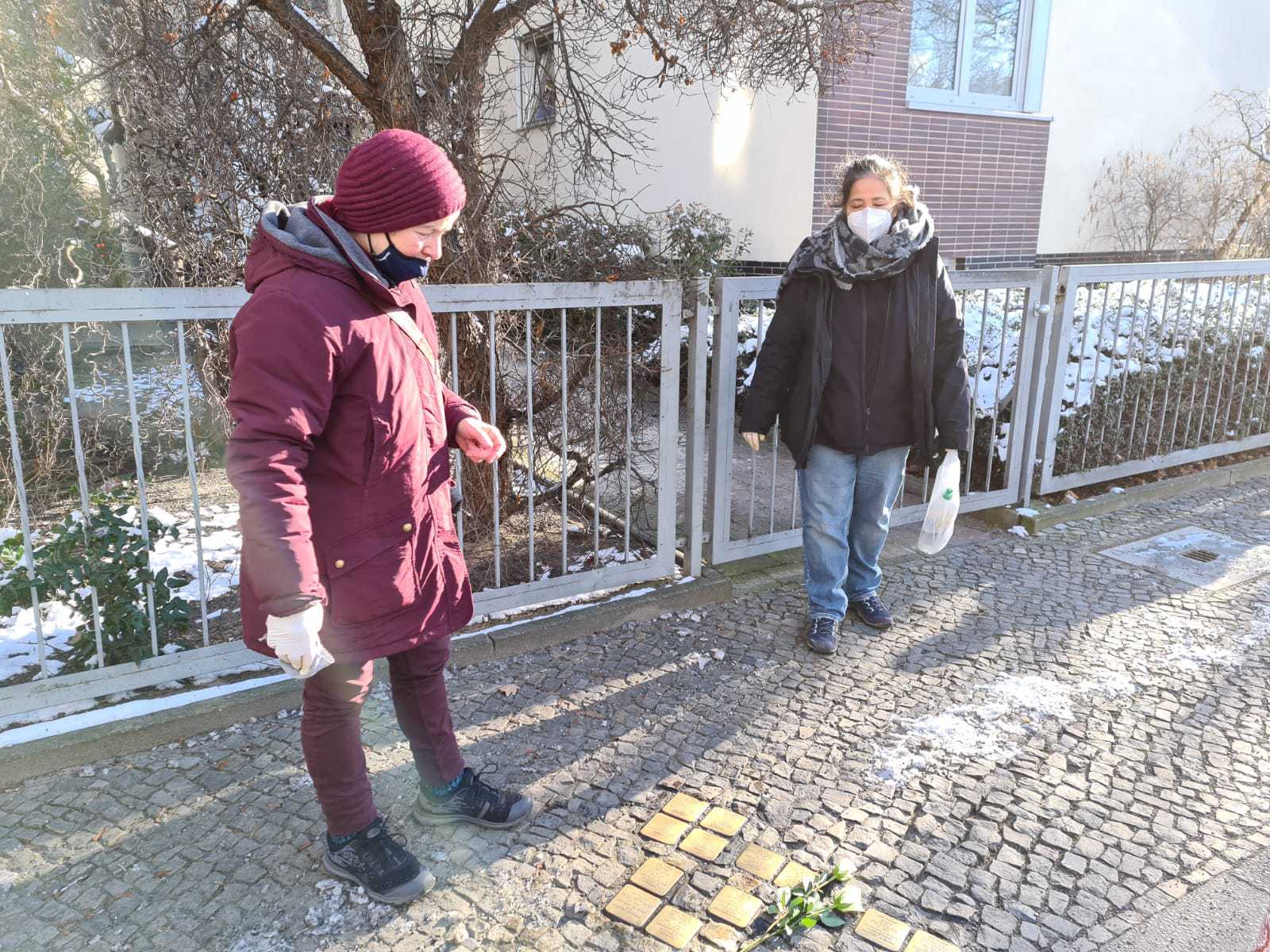 Auch trotz der schweren Zeit in der wir uns gerade befinden, wollten wir das Stolpersteinputzen in der Thomasiusstraße auch dieses Jahr nicht aussetzen. Gemeinsam mit dem Verein Gleis 69 e.V., der sich für das Gedenken an deportierte Jüdinnen und Juden in Moabit engagiert, Menschen aus der Thomasiusstraße und aus der Ev. Kirchengemeinde Tiergarten haben wir am 31.01. 2021 in der Umgebung der Moschee Stolpersteine geputzt und weiße Rosen niedergelegt.