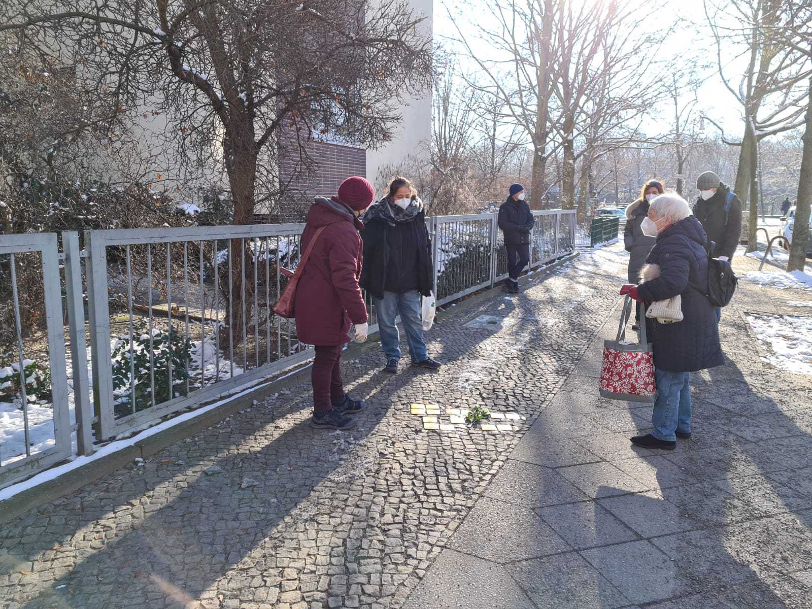 Auch trotz der schweren Zeit in der wir uns gerade befinden, wollten wir das Stolpersteinputzen in der Thomasiusstraße auch dieses Jahr nicht aussetzen. Gemeinsam mit dem Verein Gleis 69 e.V., der sich für das Gedenken an deportierte Jüdinnen und Juden in Moabit engagiert, Menschen aus der Thomasiusstraße und aus der Ev. Kirchengemeinde Tiergarten haben wir am 31.01. 2021 in der Umgebung der Moschee Stolpersteine geputzt und weiße Rosen niedergelegt.